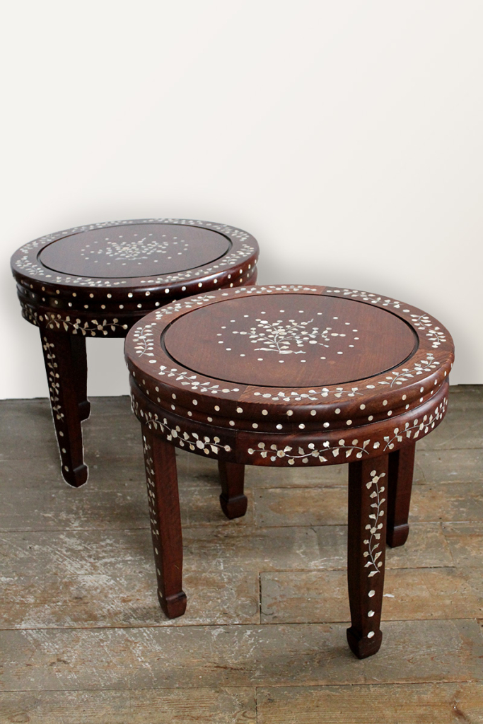 A pair of Asian tables with inlaid mother of pearl floral detail c. 1960