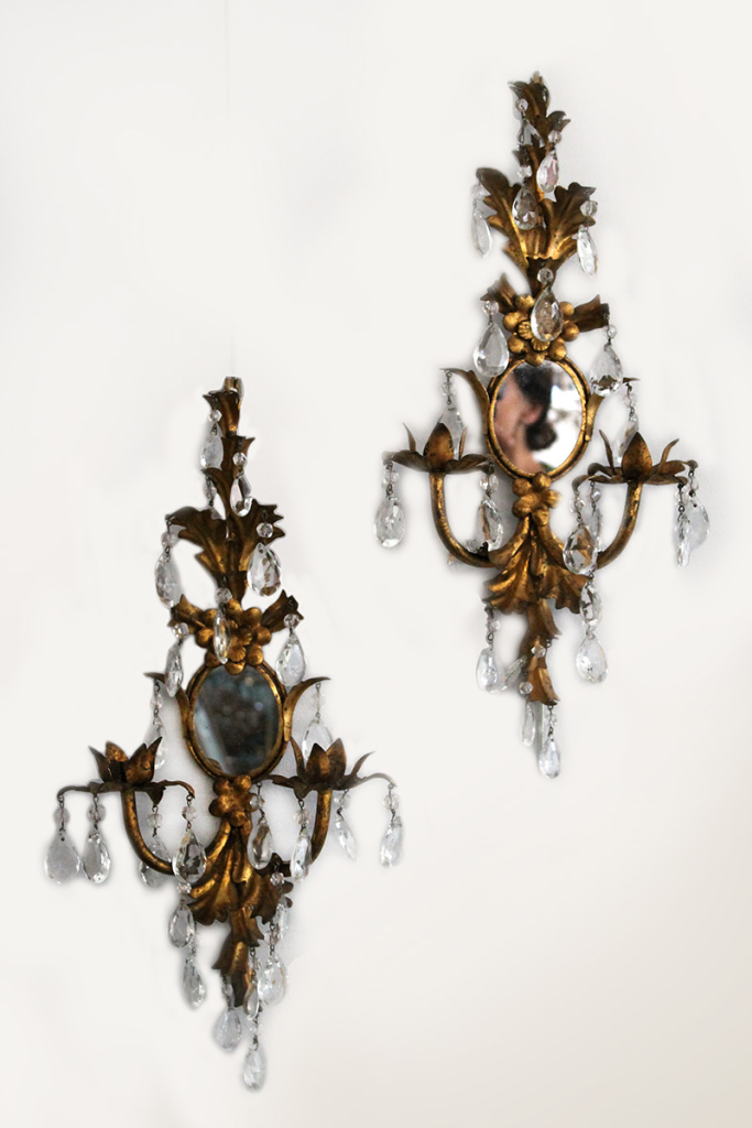 A pair of Italian gilded wall lights with small mirror detail c. 1920