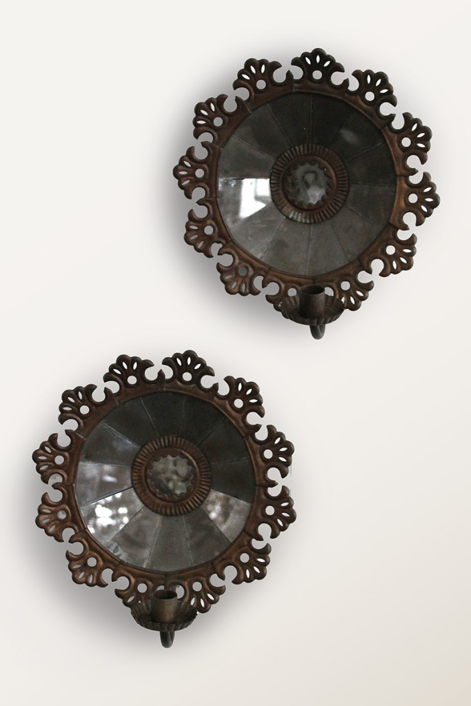 A set of 4 Italian bronze and mirror glass single arm wall lights c. 1880