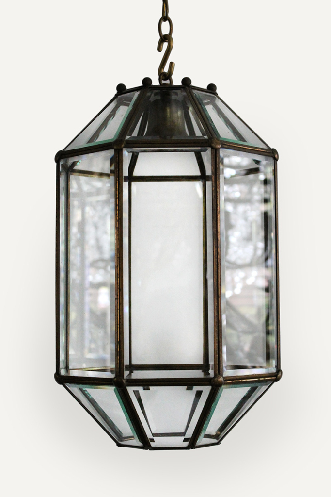 An Italian multi sided antique brass and beveled glass lantern c. 1940