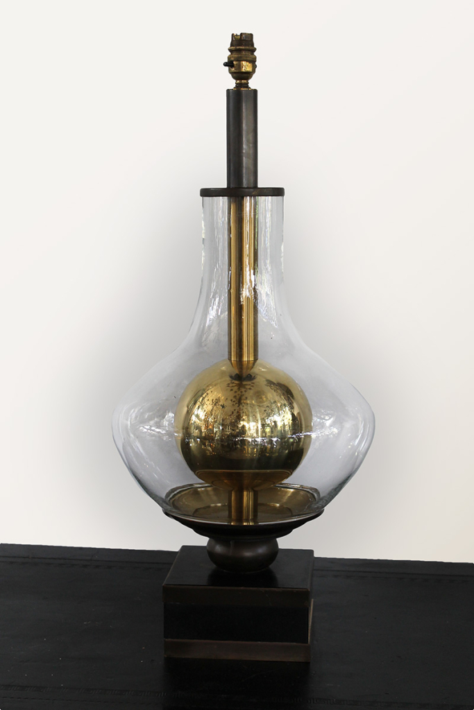 An Italian large brass and ebonised glass lamp c. 1950