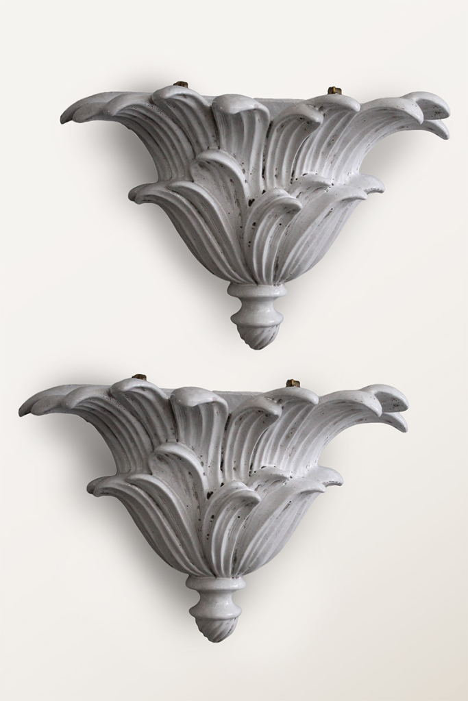 A pair of large Italian glazed pottery wall lights/ uplights c. 1950
