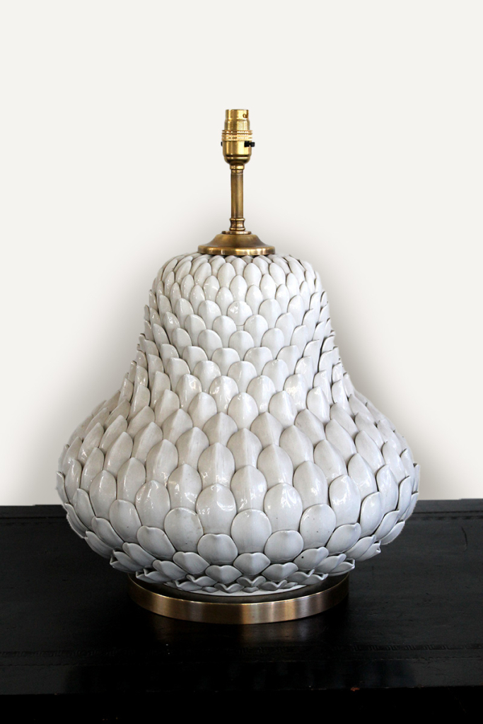 An Italian large fine pottery table lamp with antique brass base c. 1920