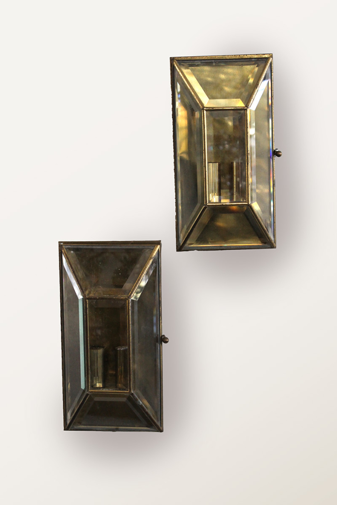 A pair of Italian brass 2 light wall lanterns with beveled glass panels c. 1880