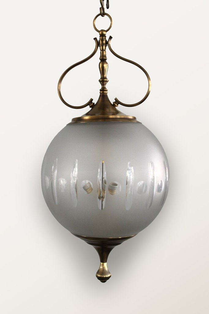 An Italian ball light with cut glass motif and an antique brass hanging suspension c. 1950